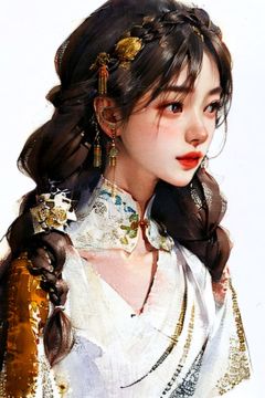 1 girl,  ( brown long hair:1.3),(two braid:1.2),,mole under eyes,earrings,huanshuyifu,white background,(white chinese clothes:1.3),hide hand behind back,(((masterpiece,best quality))),((good structure,Good composition,good atomy)), ((clear, original,beautiful))