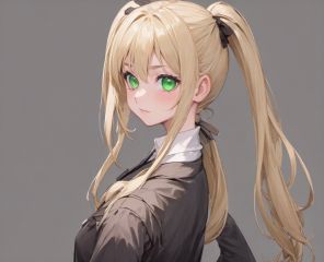 1girl,Long blonde hair,Green eyes,Arrange and distribute,ponytail,