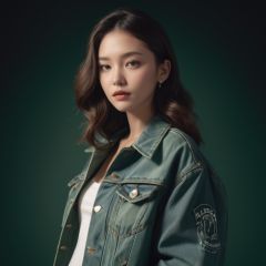 analog film photo ((full body)), (((blackish green background))), clear facial contour, (((slender chin))), ((cowboy shot)), ((Balenciaga oversized denim jacket with a logo-printed back )), upper body, 1girl, 20 years old, instagram girl, idolmaster, looking at viewer, Lois Greenfield, Flowing cloth, Beautiful dynamic dramatic dark moody lighting, volumetric, shadows, cinematic atmosphere, Octane render, 8K . award-winning, professional, highly detailed . faded film, desaturated, 35mm photo, grainy, vignette, vintage, Kodachrome, Lomography, stained, highly detailed, found footage