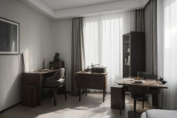 Indoor Grey, no humans, chair, table, indoors, scenery, still life, curtains, shadow, window, painting (object)<lora:Indoor_Grey-000010:0.75>