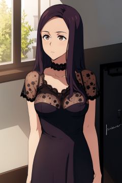 1girl, long hair, brown eyes, (medium breast:1), full black small dress with lace, <lora:EMS-18163-EMS:0.8>