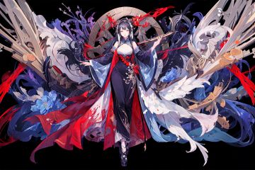 Fractal art, (white and red theme: 1.1),  Fractal flowers, Fractal,seecolor,1girl,long hair,chinese style,gao,Fractal long dress,Fractal huge wings on back,(huge wings:1.3)looking_at_viewer,