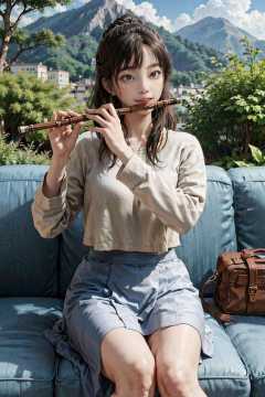 1girl, playing flute, flute,masterpiece, best quality, 8k,  <lora:flute_v1-000015:0.8>