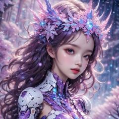 (masterpiece, top quality, best quality, official art, beautiful and aesthetic:1.2),(1girl),extreme detailed,(fractal art:1.3),colorful,highest detailed..,Purple,White,Blue,Chest,Abdomen,Snowflakes falling,(whole body:1.5),a face,(Only one face.:1.1),.,relief,Pink Mecha