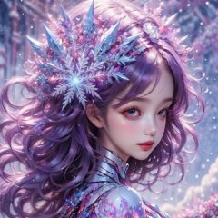 (masterpiece, top quality, best quality, official art, beautiful and aesthetic:1.2),(1girl),extreme detailed,(fractal art:1.3),colorful,highest detailed..,Purple,White,Blue,Chest,Abdomen,Snowflakes falling,(whole body:1.5),a face,(Only one face.:1.1),.,relief,Pink Mecha