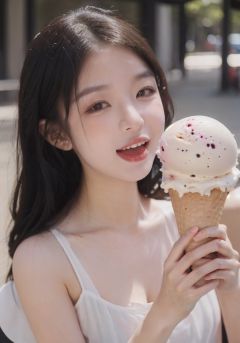 a young girl,(licked ice cream:1.1),happy,long hair,<lora:bql_20230806022258-000006:0.3>,<lora:1aiyaha_20230803184520:0.4>,looking at viewer,tongue,(torticollis:1.2),