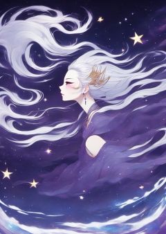<lora:sdxl_shenhua_v2:1>,shenhua, Starry sky adorns hair, sparkling anime eyes,beautiful detailed stars,blighting stars,emerging dark purple across with white hair,multicolored hair,beautiful detailed sky, beautiful detailed water, cinematic lighting, dramatic angle,,
