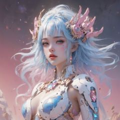 (masterpiece, top quality, best quality, official art, 4k,beautiful and aesthetic:1.2),(1girl),extreme detailed,colorful,highest detailed,White,Chest,Abdomen,(Cosmic background),((blue hair)),Pink Mecha,Minimalist style