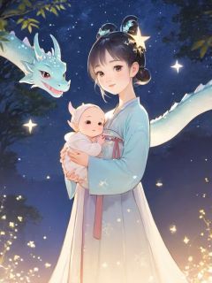 star,starlight, forest, 1girl holding dragon baby, looking at viewer, dragon baby ears, she wearing hanfu, surrounded by shining stars, animation illustration,<lora:hanfuTang_v41_R_SDXL:0.55>,