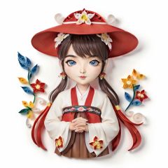 yanzhi,paper quilling Artwork,1girl,chibi,beauty eyes,High quality,Best quality,8K,brown hair,A light red hat,decorated with various pins, and leather bands on the side,American street style,White background,yanzhi,1girl,hanfu,Studio lighting, <lora:hanfuTang_v41_R_SDXL:0.5> <lora:sdxl_yanzhiV4:0.5> <lora:neg4all_bdsqlsz_xl_V7:1>