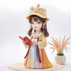yanzhi,paper quilling Artwork,1girl,chibi,beauty eyes,High quality,Best quality,8K,brown hair,A light red hat,decorated with various pins, and leather bands on the side,American street style,White background,yanzhi,1girl, hanfu, white upper shan, multicolour chest pleated skirt, yellow waistband, Studio lighting, <lora:hanfuTang_v41_R_SDXL:0.5> <lora:sdxl_yanzhiV4:0.5> <lora:neg4all_bdsqlsz_xl_V7:1>