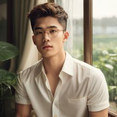 masterpiece, 1 Man, Handsome, Look at me, Brown eyes, Short hair, Oil head, Evening dress, Gold rimmed glasses, 22 years old, Indoor, Outside the window is the garden., textured skin, super detail, best quality<lora:sdxllora-000006:0.4>