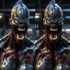 cinematic StereoCam Splash art, Venom character, splash style, contour, hyperdetailed intricately detailed , unreal engine, fantastical, intricate detail, splash screen, complementary colors, fantasy concept art, 8k resolution, deviantart masterpiece, oil painting, heavy strokes, paint dripping, splash art, realistic, highly detailed, StereoCam, side by side <lora:Stereocam:1>