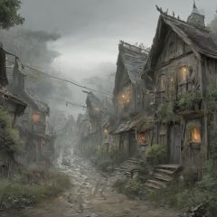 gloomy,village,best quality,highly detailed,masterpiece,extremely detailed,Amazing,finely detail,official art,  <lora:gloomyXL:1>