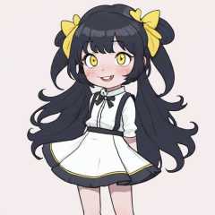 ((((loli)))), ((black hair,yellow eyes)),long eyelashes,hair_ornament,wavy_hair,cute,shy,(magazine cover:1.4),1girl,solo,extremely detailed CG unity 8k wallpaper,lens 135mm, young girl,(white background:1.5),full body,simple background,,straight-on,smile,closed mouth,cape,naughty face,ahoge,close-up(serafuku),white shirt,white sweater vest,(black long skirt:1.4), <lora:EMS-19880-EMS:0.6>