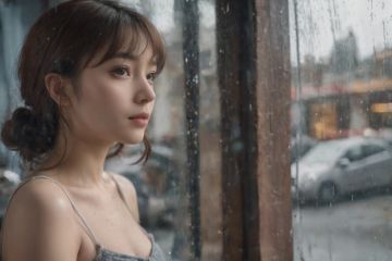cinematic film still (RAW photo, best quality), (realistic, photo-realistic:1.3), extremely delicate and beautiful, Amazing, finely detail, masterpiece, ultra-detailed, highres, (best illustration), (best shadow), intricate, a Chinese girl looking out through the window of small hair salon by the street, On the glass reflects the shadow of a man on the street., (it is raining outside:1.4), .in the style of tenebrism effects, ghosting effect, emotional gestures, she is around 30, wearing skirt and heavy, clumsy makeup.neon and street light reflections on window.blink and you miss it detail, emotional sensitivity, A gloomy and hopeless atmosphere. natural skin texture, movie still., ((bluecore:1.4)), . sharp focus, volumetric fog, 8k UHD, DSLR, high quality, (film grain:1.4), Fujifilm XT3, <lora:SDXL_Glass_Sa_May:0.85> . shallow depth of field, vignette, highly detailed, high budget, bokeh, cinemascope, moody, epic, gorgeous, film grain, grainy
