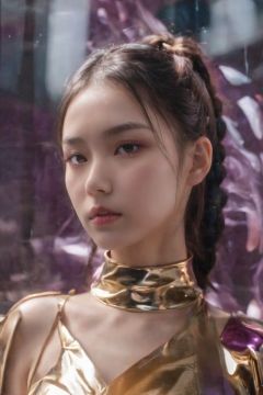 neonpunk style a Chinese girl looking out through the distortions behind the glass, distortions behind the glass, Moschino metallic gold leather skirt, <lora:SDXL_Glass_Sa_May:0.85> . cyberpunk, vaporwave, neon, vibes, vibrant, stunningly beautiful, crisp, detailed, sleek, ultramodern, magenta highlights, dark purple shadows, high contrast, cinematic, ultra detailed, intricate, professional