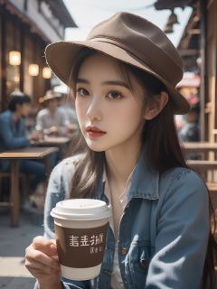 (original photo:1.2 , Best Quality),(Realistic, Photorealistic:1.3),cowboy shot,xiaoyi,a girl sitting in a cafe drinking coffee,looking through the glass at the pedestrians in the street,The cup is written with "xiaoyi."<lora:xiaoyi-XL (1):1>