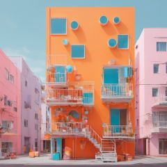 in the style of saturated pigment,PierreCardin,pastel accent hermes orange building,conceptual playlists,bright sculptures,contemporary candy - coated,<lora:secai-surenjike:0.8>,