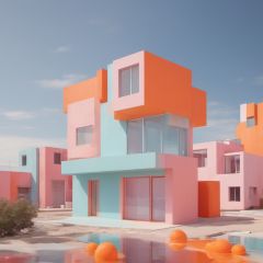 in the style of saturated pigment,PierreCardin,pastel accent hermes orange building,conceptual playlists,bright sculptures,contemporary candy - coated,<lora:secai-surenjike:0.8>,
