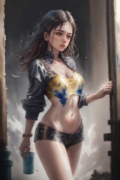 Photorealistic, Hyperrealistic, Hyperdetailed, analog style, ((medium shot)) 1girl, detailed skin, matte skin, soft lighting, subsurface scattering, realistic, heavy shadow, masterpiece, best quality, ultra realistic, 8k, golden ratio, Intricate, High Detail, film photography, soft focus, (Extremely Detailed Oil Painting:1.2), glow effects, godrays, Hand drawn, render, 8k, octane render, cinema 4d, blender, dark, atmospheric 4k ultra detailed, cinematic sensual, Sharp focus, humorous illustration, big depth of field, Masterpiece, colors, 3d octane render, 4k, concept art, trending on artstation, hyperrealistic, Vivid colors, extremely detailed CG unity 8k wallpaper, trending on ArtStation, trending on CGSociety, Intricate, High Detail, dramatic, absurdres, fluid, dynamic, movement,(watercolor:1.3)