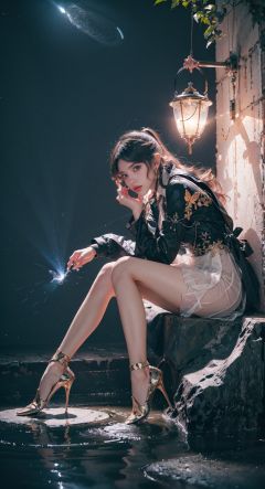 Close up view. (8k, best quality, masterpiece: 1.2), (realistic, realistic: 1.37), ultra detailed, best quality, ultra high resolution, professional lighting, photon mapping, radiosity, physics based rendering, movie lighting, photo realistic,best quality, masterpiece, photo realistic,highly detailed, fashion photography, full body shot,full body photo,(), (girl),.reflection in water, lantern, (bonsai:1.1), (firefly: 1.4), insects, purist, esoteric,occult, geometric,(night:1.1), (gold/black theme:1.2),nature, dress, flowers,butterfly,girl, Aesthetic Background,sen,plan,flowers,tree,guanyin,bj_Devil_angel,flower,machinery,fairy tale girl,vortex,Chinese style,nvshen,ghostdom,Night scene,Colorful portraits,baihuaniang,evil ghost,1 girl,nijistyle,Real,Update,Lighting,science fiction,triangle black hole,Mr_MC_R-WM_V1,2B Nier Automata, <lora:EMS-20887-EMS:0.8>, <lora:EMS-19270-EMS:0.6>, <lora:EMS-13208-EMS:0.6>