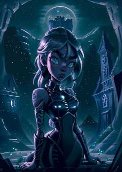 best quality, masterpiece, a South African girl in The Dark Citadel landscape at Moonlit night detailed, 4k, 8k, intricate details, mood, soft shading