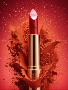 Best quality,masterpiece,(ultra high res),<lora:电商口红-000017:0.8>,chocolae dianshang2,Commercial photography,powerfulexplosion of red dust,designer lipstick,white lighting studio light,8k octane renderinghigh resolution photography,insanely detailed fine details,isolated plain,stock photo professional color grading,award winning photography,black background,