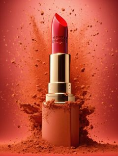 Best quality,masterpiece,(ultra high res),<lora:电商口红-000017:0.8>,chocolae dianshang2,Commercial photography,powerfulexplosion of red dust,designer lipstick,white lighting studio light,8k octane renderinghigh resolution photography,insanely detailed fine details,isolated plain,stock photo professional color grading,award winning photography,