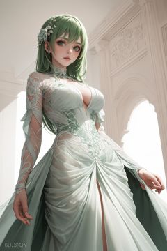 ,(((masterpiece,best quality))),((good structure,Good composition,good atomy)), ((clear, original,beautiful)),buxie,1girl,long hair,(green white theme:1.3),out doors,dress,