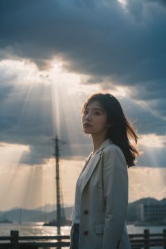Best Quality,Masterpiece,Ultra High Resolution,(Realisticity:1.4),Original Photo,Cinematic Lighting,1Girl,light rays,Tyndall effect,outdoor,cloud, <lora:Tyndall effect_Light v1.1:0.6>,