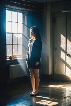 Best Quality,Masterpiece,Ultra High Resolution,(Realisticity:1.4),Original Photo,Cinematic Lighting,1Girl,full body,light rays,Tyndall effect,indoor,window, <lora:Tyndall effect_Light v1.1:0.6>,