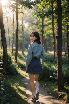 Best Quality,Masterpiece,Ultra High Resolution,(Realisticity:1.4),Original Photo,Cinematic Lighting,1Girl,full body,forest,sunshine,backlighting,