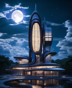 jingjing,Night, moon, white clouds, futuristic architecture, lakeside, cement road, HDR, bloom, chromatic aberration, photorealistic, extremely detailed, popular on artstation, popular on CGsociety, complex, high detail, dramatic, art midway,<lora:sdxl_jingjing_v2-000004:1>,
