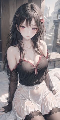 cropped leg,Facing the lens,look at viewer,kiss,from side,see-through sleeve,black clothes,see-through clothes,wet,wet,close mouth,narrowed eyes, half-closed eyes,wet,pov,crying with eyes open,eyes visible through hair,ahoge,student,on bed,narrowed eyes, heart hair ornament, beautiful background,bishoujo,cold attitude,clear face,expressionless,light blush,messy_hair,messy_hair,arm strap, longhair,side braid,