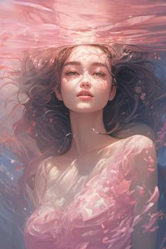 (masterpiece, top quality, best quality, official art, beauty and aesthetics: 1.2), extreme detail, surrealism, (fractal art: 1.3), rich colors, highest detail, 1 girl, (navel, tailored clothes, bikini: 1.4), underwater, long hair, pink hair, silver hair, queen's crown