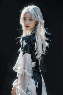 sc, masterpiece, best quality, highres, Ultra High Resolution,(Realisticity:1.4), Original Photo, photorealistic, realistic, pale skin, (black eyes:1.4), (simple background, depth of field, solid background), dramatic lighting, glowing, light particles, sparkle, trending on artstation, trending on CGsociety, Intricate, high detail, dramatic, volumetric lighting, Cinematic Lighting, backlighting, Naoyuki Obayashi,1girl, solo, ((cowboy shot:1.4)), looking at viewer, long hair, ((white hair:1.4)), long hair, floral print dress, china dress, qipao, cheongsam,<lora:FilmPortrait_v1.0:0.3:BODY> <lora:SCGIRL:0.6> <lora:赛博国风_旗袍_v1:0.8:CLOTHING>