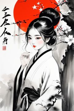 Chinese painting,ink painting,black and white painting,1girl,<lora:shuimo:0.7>,