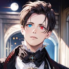 Black suit,white shirt,1boy,elegant,mafia,upper body,garden,moonlight,(((heterochromia))),left red eye,right blue eys,White male,<lora:2023-05-13_224157:1>,black hair,upper body,, fcportrait
