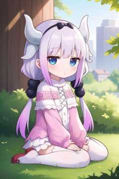 anime, hdr, soft light, ((best quality)), ((masterpiece)), (detailed), <lora:Kanna05:1>, kannakamui, cute, chibi, dragon horns, hair beads, low twintails, dress, thighhighs, looking at viewer, jitome, captivating pose, wariza, city, nature, <lora:EyeControl_Jitome_v2:0.8>