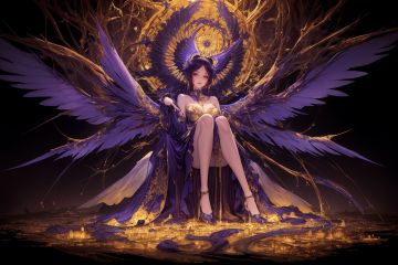 ,(((masterpiece,best quality))),((good structure,Good composition,good atomy)), ((clear, original,beautiful)), keke,fantasy theme,Purple Gold theme,fractal,wings,1girl