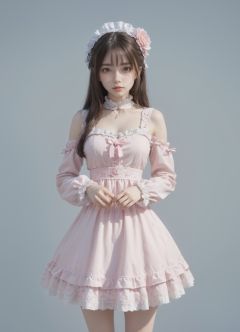 a girl in a lolita dress, lolita_fashion, 1girl, solo, realistic, full body<lora:SweetLolita:0.8>