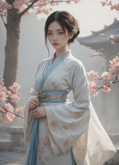 a girl in a hanfu dress, 1girl, solo, realistic, full body<lora:SweetLolita:0.8>