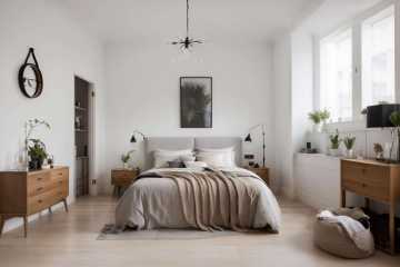 ((masterpiece))), best quality,ultra-detailed, 8k, wallpaper, extremely delicate and beautiful, highresolution, ray tracing, best shadow, (realistic, photorealistic:1.37),professional lighting, photon mapping, radiosity, physically-based rendering,Nayuta Nordic Modern Interior Design, no humans, lamp, pillow, table, scenery, indoors, bed, couch, vase, plant, rug, carpet, bedroom, chair, painting (object), flower<lora:Nordic Modern Interior Style:0.65>