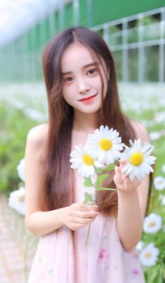 1girl, 25 yo, a girl with long hair holding a flower in her hand, yanjun chengt, real image, holding daisy, huifeng huang, 2022photo, f4.0