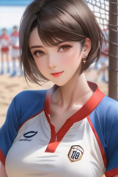 best quality,masterpiece,realistic,textured skin,1girl,realistic photo, volleyball uniform, large breasts, volleyball, solo focus, looking at viewer, blurry background, brown eyes, sportswear, short hair, blurry, shorts, covered navel, lips, black hair, arms at sides, ball, mole on thigh, mole, thighs, shirt, standing, short sleeves, cowboy shot, closed mouth, taut clothes, smile