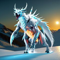 Creature (j/da), movie effects, (extremely complex :1.3), action posture, (Sacred Fetal Creature :1.2), noble white color, full body light), on the ice field<lora:sdxl_shengwuV3-000015:0.8>