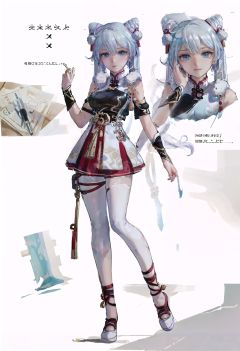 (multiple views:0.7), (sketch:1.25), shy, best quality, graphite \\(medium\\), ske, gradient, rainbow, (note:1.2), Line draft, highres, absurdres, (ultra-detailed:1.1), (illustration:1.1), (infographic:1.2), pajamas, (all clothes configuration:1.15), (solo), perfectly drawn hands, standing, cohesive background, paper, action, (character design:1.1),full body,<lora:qiyana-v100-v2:1>,(xuetu, double bun, chinese clothes:1.2), hair bun, white hair, long hair,<lora:EnvyBetterHands LoCon_beta2 辅助:1>,good hands,nice hands,(beautiful_face), ((intricate_detail)), (revealing clothes:1.2), clear face,((finely_detailed)), fine_fabric_emphasis,((glossy)),