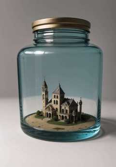 miniature world,no human:1.2, <lora:Miniature world(final1):1>,glass jar, a town in the jar