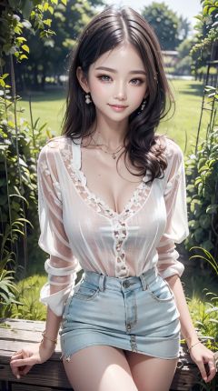 1 girl, floral pattern, long hair, alluring eyes, embellished clothing, natural light, shallow depth of field, romantic setting, dreamy pastel color palette, whimsical details, captured on film, (Original photo, best quality) , (Real, Photorealistic): 1.3), Clean, Masterpiece, Fine Detail, Masterpiece, Ultra Detailed, High Resolution, (Best Illustration), (Best Shadows), Delicate, Bright Light, (Field of View): 1.3), (miniskirt: 1.5), (white shoes: 1.4), long legs, forest, grass, (light: 1.5), (field of view: 1.3), (standing: 1.7), (smile)